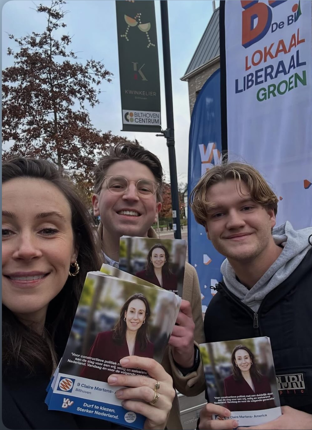 Op zaterdag 25 oktober 2025 trokken we met de VVD de straat op bij de Kwinkelier in Bilthoven om met inwoners in gesprek te gaan over wat er leeft in Nederland. Samen met minister van Financiën Eelco Heinen (#2) en onze eigen Claire Martens, nu Tweede Kamerlid en onze kandidaat uit Bilthoven #9 op de lijst van de VVD, spraken we over thema’s die onze dorpen raken.